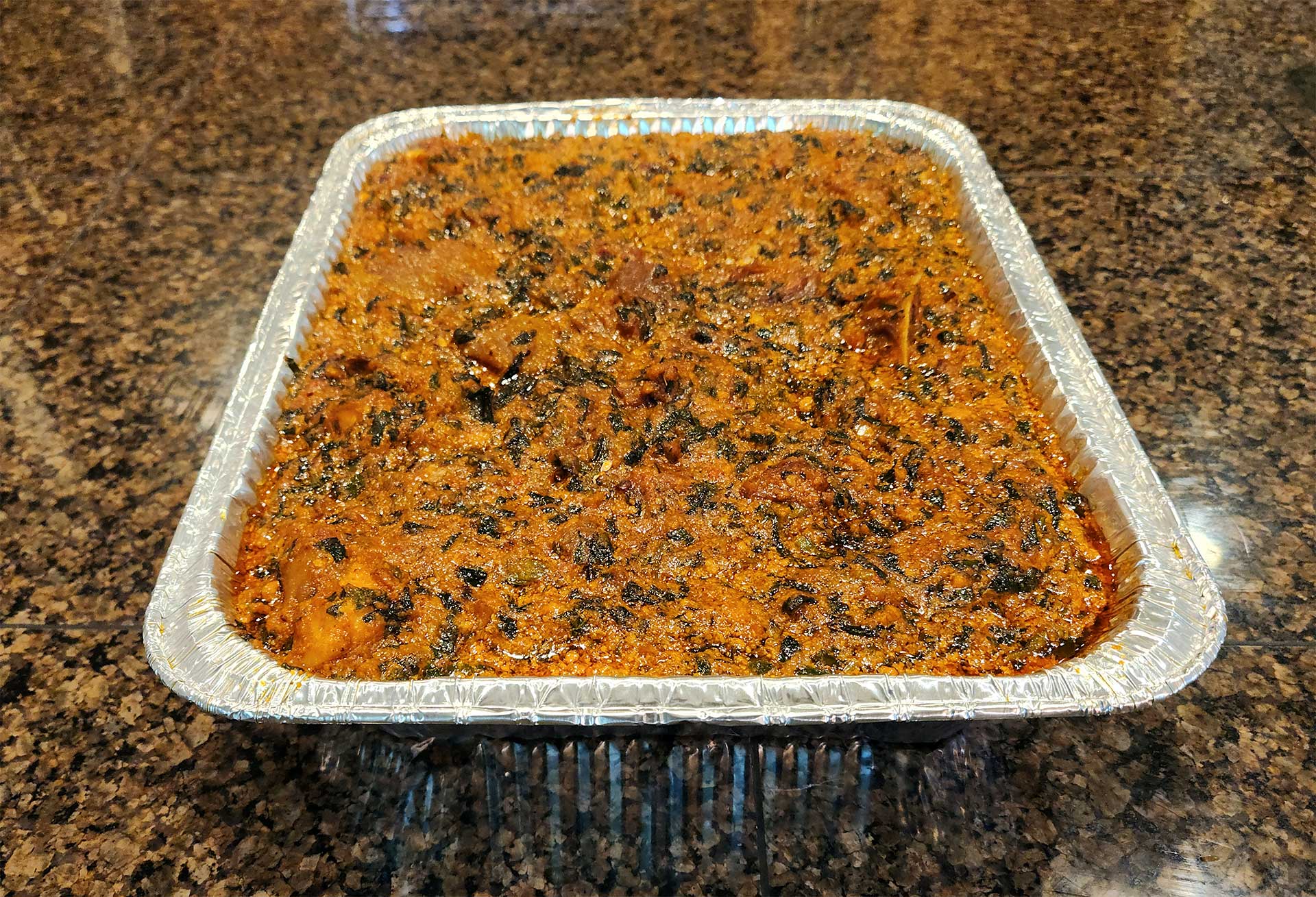 A West African staple made with melon seeds, fresh tomatoes, and tomato paste. The broth can be enriched with fish, beef, or your protein of choice. Full-size pan.